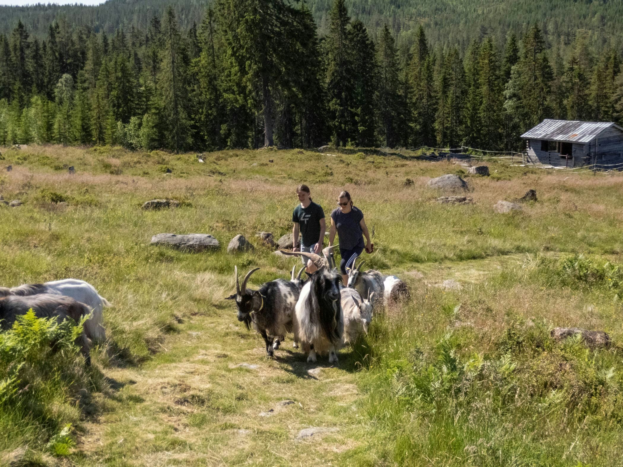 Stay in timber cabin surrounded by horses and goats