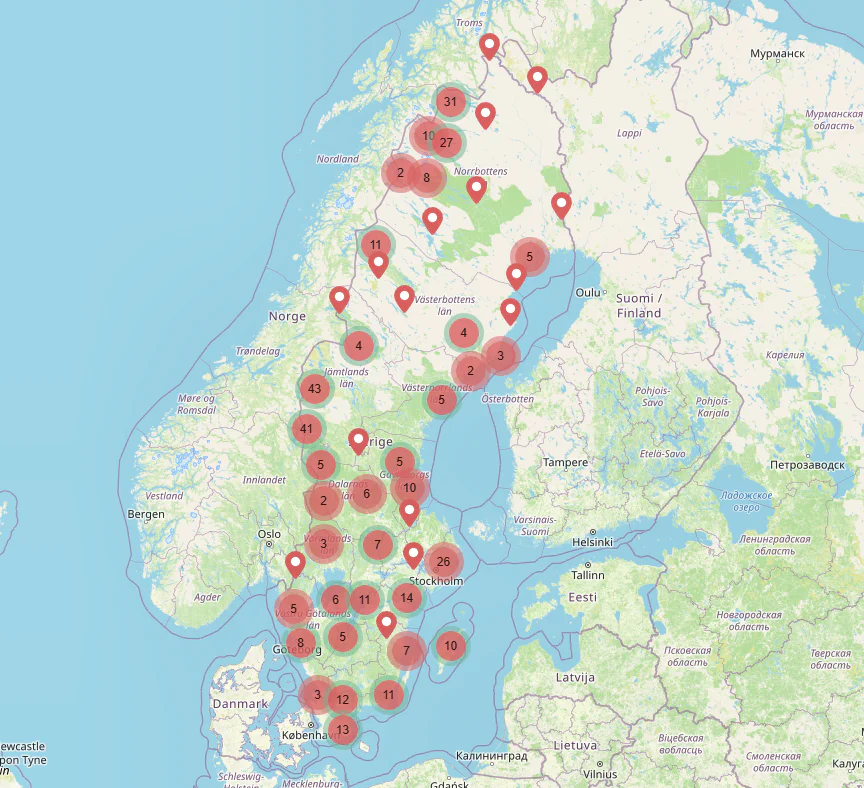 STF has over 250 accommodations across Sweden where you, as a member, can stay at discounted rates. Here you can view all accommodations on a map of Sweden.