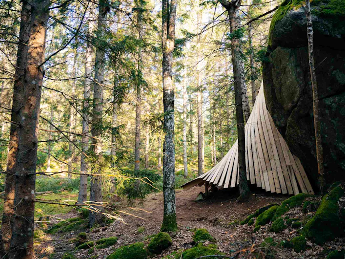 The trail runs through quiet forest past the remains of the croft Soluppgång and reaches the lake Hjorten, a crystal-clear drinking water source for Västervik since 1923, with osprey and black-throated loon as constant companions. At Törnsfall, where you can visit one of only two preserved medieval churches in all of Tjust, the connecting trail takes over and leads you the final eight kilometres towards Västervik. The route crosses the ridge Dunhällarna, through a magnificent Bronze Age landscape with some twenty cairns and stone settings, and past the inviting bathing spots at the lake Gagern before the trail ends at Marsbäcken on the outskirts of Västervik. Just before Marsbäcken, you’ll find another spectacular Arknat shelter where you can spend your final night. From there, follow the waterfront promenade into the town centre or catch the bus from Gertrudsvik. STF Västervik Hotell Park, Hotell Fängelset and several other hotels are located near the central station.