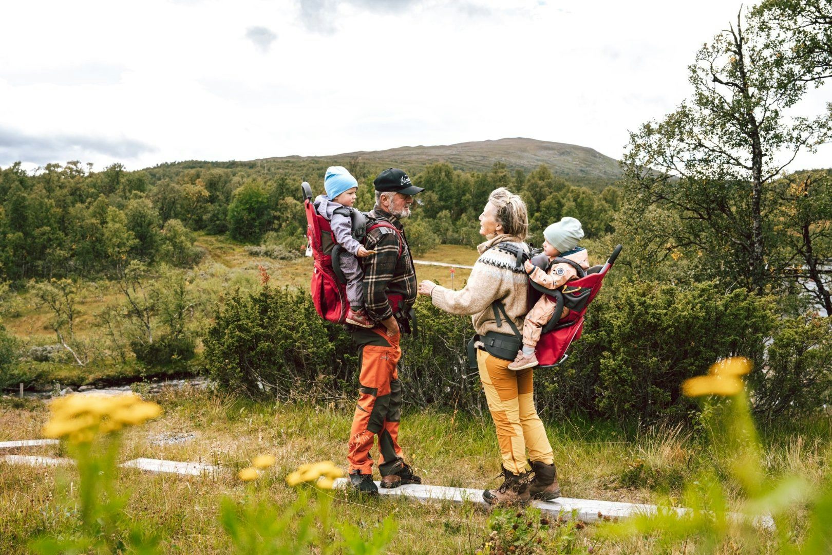 The first few kilometres take you through a mountain birch forest. After the suspension bridge over the river Lill-Ulvån, the trail continues above the tree-line all the way to your destination. There trail slopes gently uphill the whole way, with a few exceptions. The famous silhouette of Sylarna can be seen all day. After eight kilometres, you come to the wind shelter at Spåjme, an great place to stop for a break if the weather is bad. Water can be taken from streams along the way. The station has a self-catering kitchen and a fully licensed restaurant.